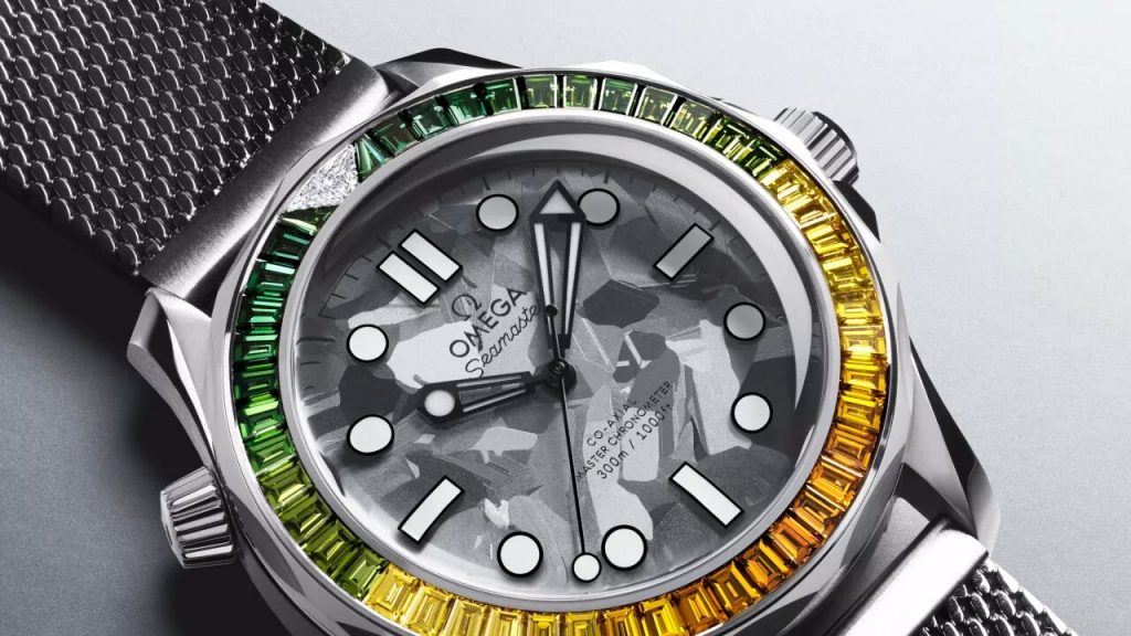 Referencing the Jamaican flag, the bezel is set with a wreath green and yellow treated natural diamonds in ten different tropical shades, which range from extra dark forest green to a cognac shade, passing through olive, yellow, gold and gold. Two clear diamonds mark the 12 o’clock position. The Oemga replica for sale UK is powered by the Co-Axial Master Chronometer Calibre 8807, which also sports the stunning take on the gun barrel sequence. It is attached to a mesh bracelet in 18K Canopus Gold.